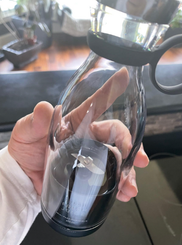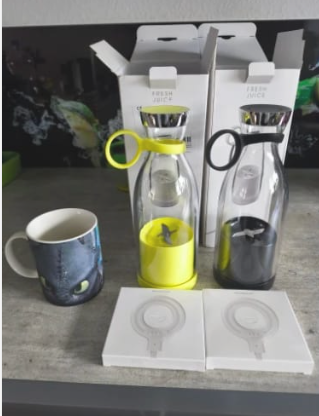 The black juicer has a great texture. It resembles a bottle, making it very suitable to take out. A cool glass of juice in summer is simply wonderful.