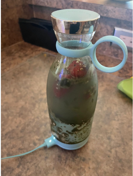 I will say that the blender itself is really adorable, and it is super easy to carry around once you get your drink blended up and prepared in it. And it is super convenient to be able to mix up a single sized portion of a smoothie between emails in the morning at work.